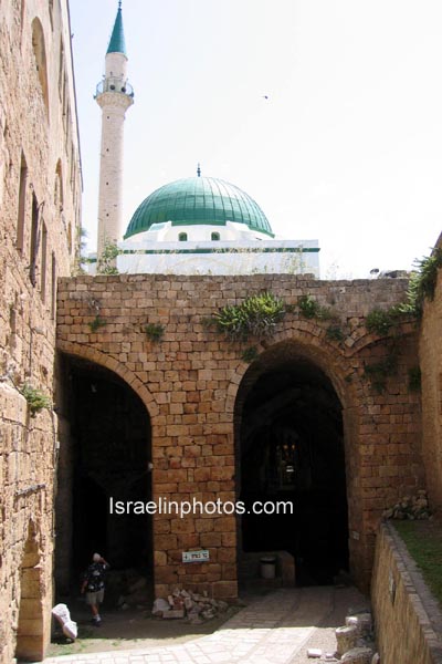 According to the text in Arabic engraved over the doorway, the mosque was consecrated in the year 1196 of the Hegira, which corresponds to the year 1781/82 CE, i.e. in the early years of the rule of Al Jazzar Pasha in Acre.The Mosque of Ahmed Jazzar was built on ruins of the Cathedral of the Holy Cross. The Mosque is named after the ruler Al Jazzar, which means butcher, because of his extreme cruelty. Today the mosque is known as Jama El Basha (Mosque of the Pasha).The columns creating the porch around the courtyard were looted from Caesarea; the rooms were intended for students and pilgrims. Below are large vaults, the basement of the Crusader church of St John.The mosque is the most beautiful in the Galilee, decorated with blue and brown murals inside, it has wall-to-wall Persian carpeting. A box in the fenced-off area upstairs contains hairs of beard of Prophet Mohammed, shown to public only on 27th day of the month Ramadan.At the entrance is a twin domed building, holding the tombs of Al Jazzar (†1804) and his adopted son and successor Suleiman Pasha (†1819).
